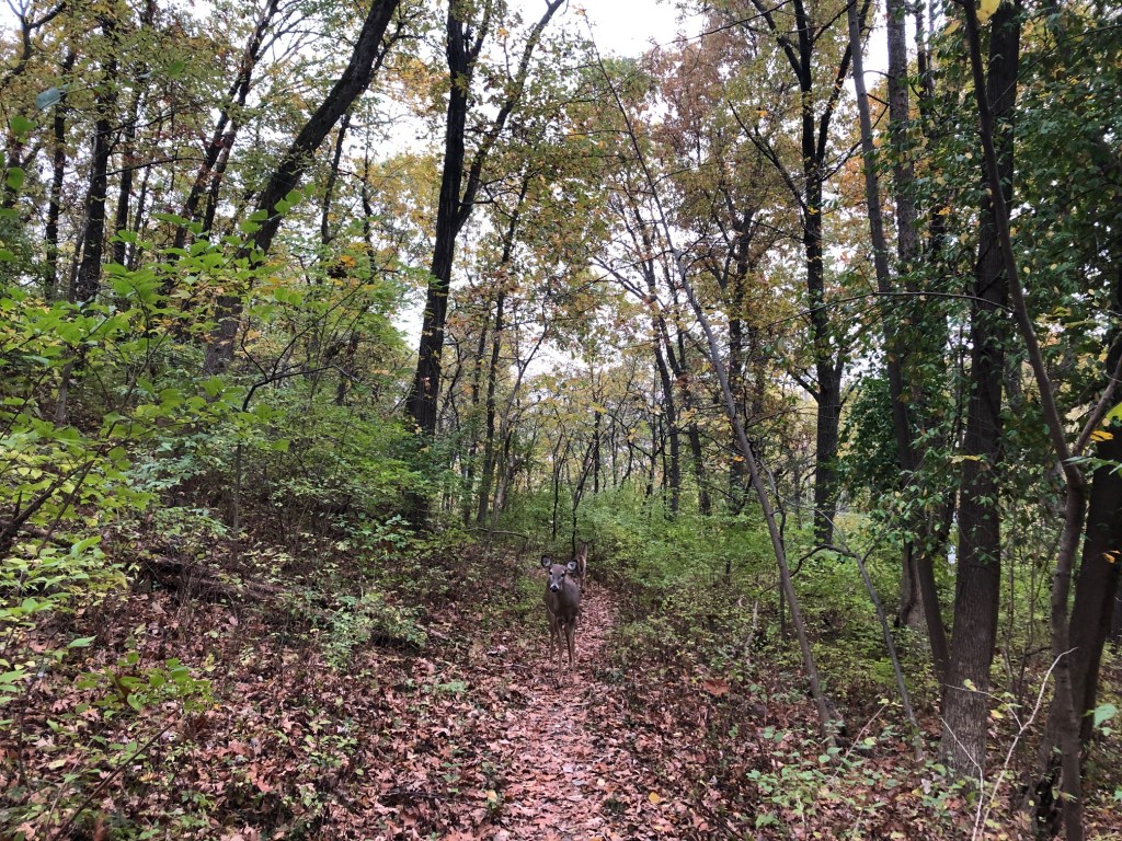 While on my walk I decided to put on my blue surgical mask for some reason, even though there was no one around. A few moments later, a couple deer—I would guess a mother and a fawn—appeared on the path. Instead of running away, they walked toward me, looking at me curiously. Maybe with my mask on they did not perceive me as a human danger, but as a less harmful animal. Or maybe they were just bold, reckless city deer. Eventually they heard a small animal moving in the brush and wandered off.