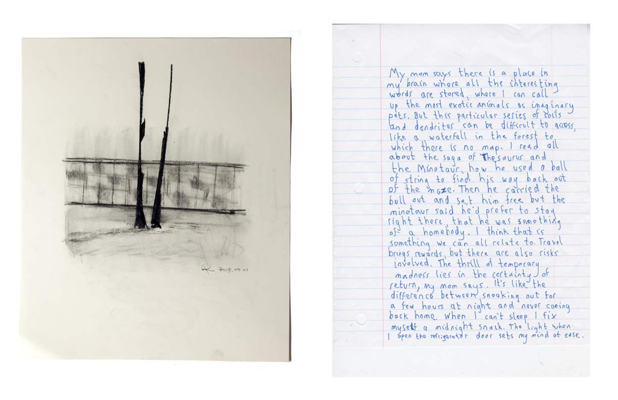 The result of this experiment is “What The Left Hand is Doing,” a 28-page book that presents the writing and artwork in tandem, with high-quality, full-color facsimiles of the writer’s notebook entries and the artist’s sketches and paintings.