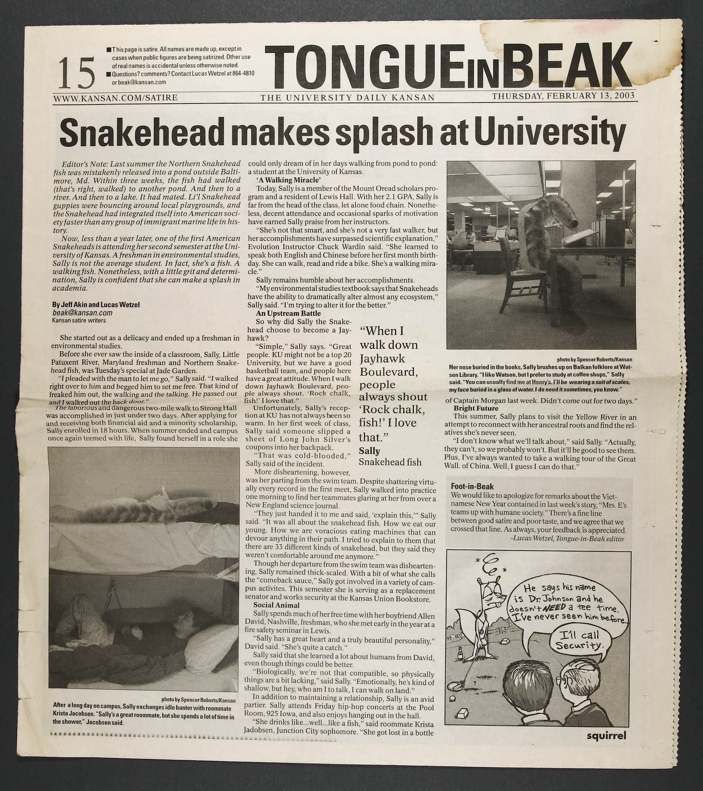 Tongue-In-Beak, University Daily Kansan satire pages by Lucas Wetzel